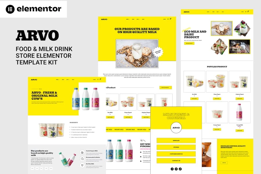 Arvo – Template Kit Elementor para tienda de alimentos y bebidas lácteas