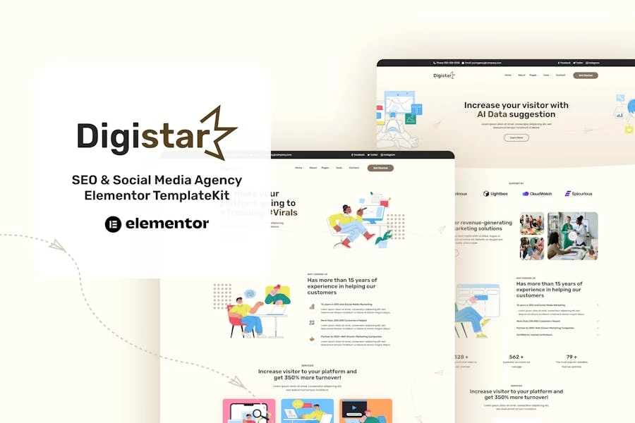 Digistar – Kit de plantillas Elementor para Agencia de SEO y redes sociales