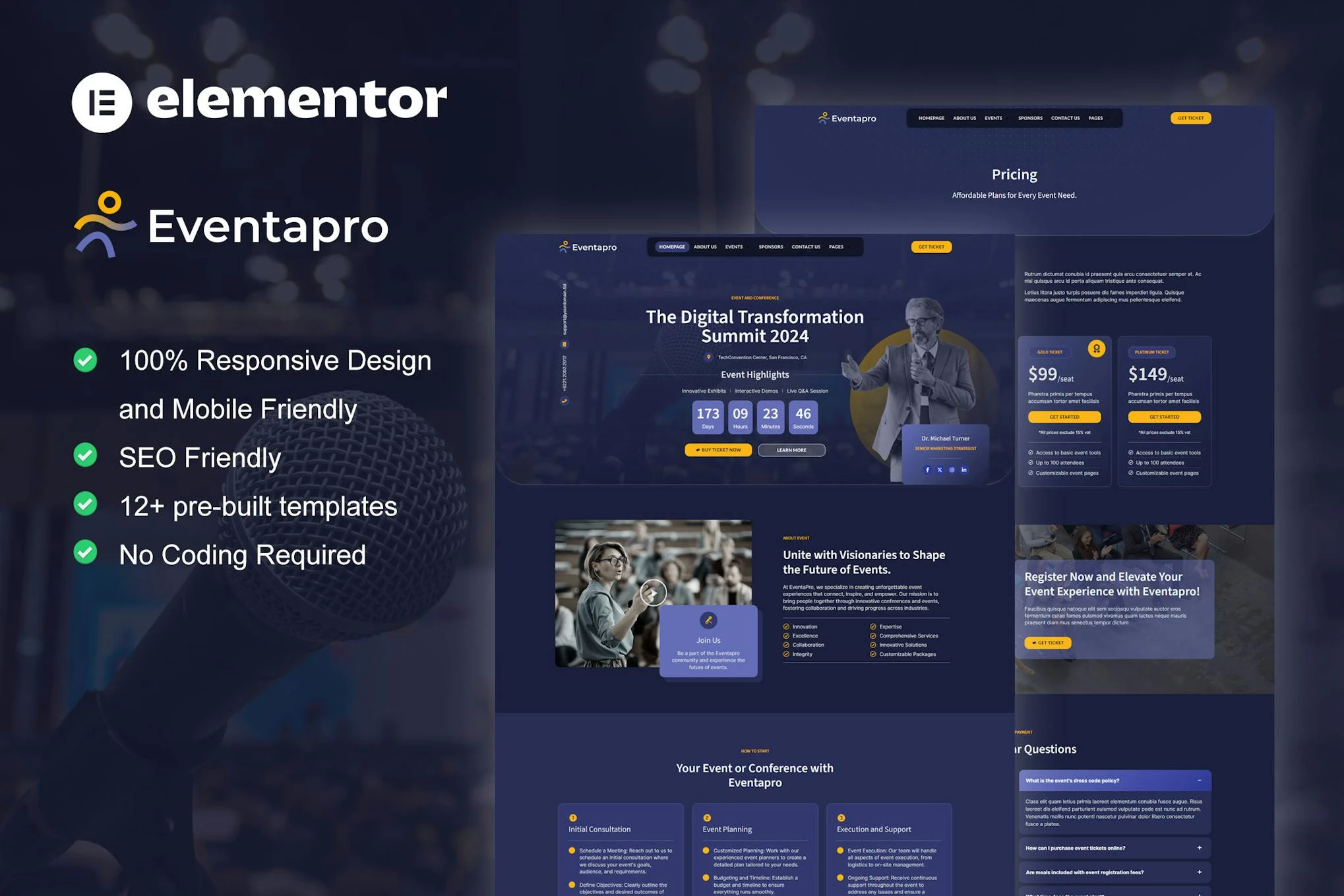 Especificaciones: Eventapro – Kit de plantillas Elementor Pro para eventos y conferencias