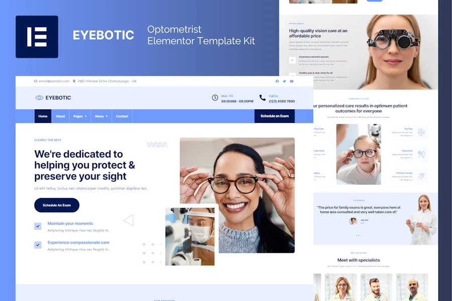 Especificaciones: EyeBotic – Template Kit Elementor para optometristas