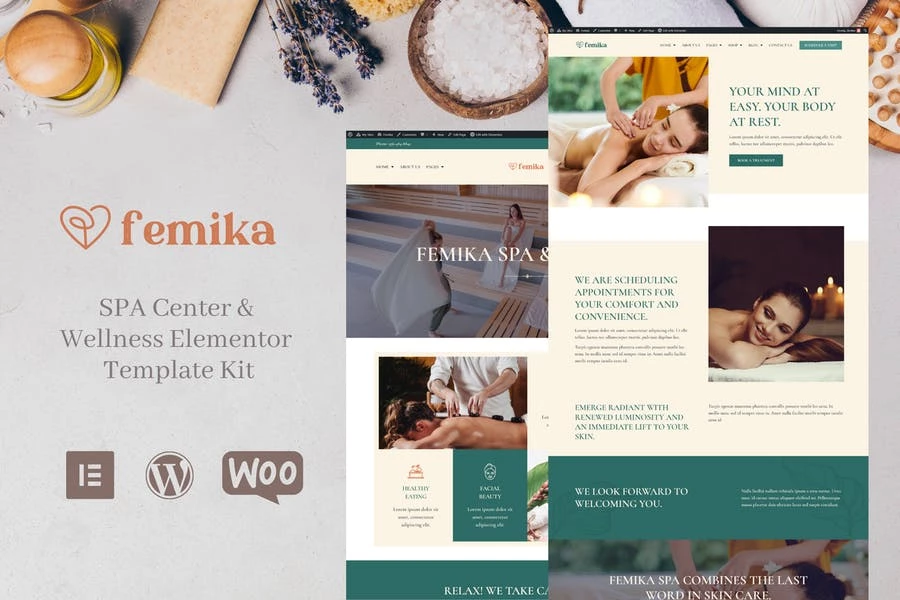 Femika – Kit de plantillas Elementor Pro para centro de spa y bienestar