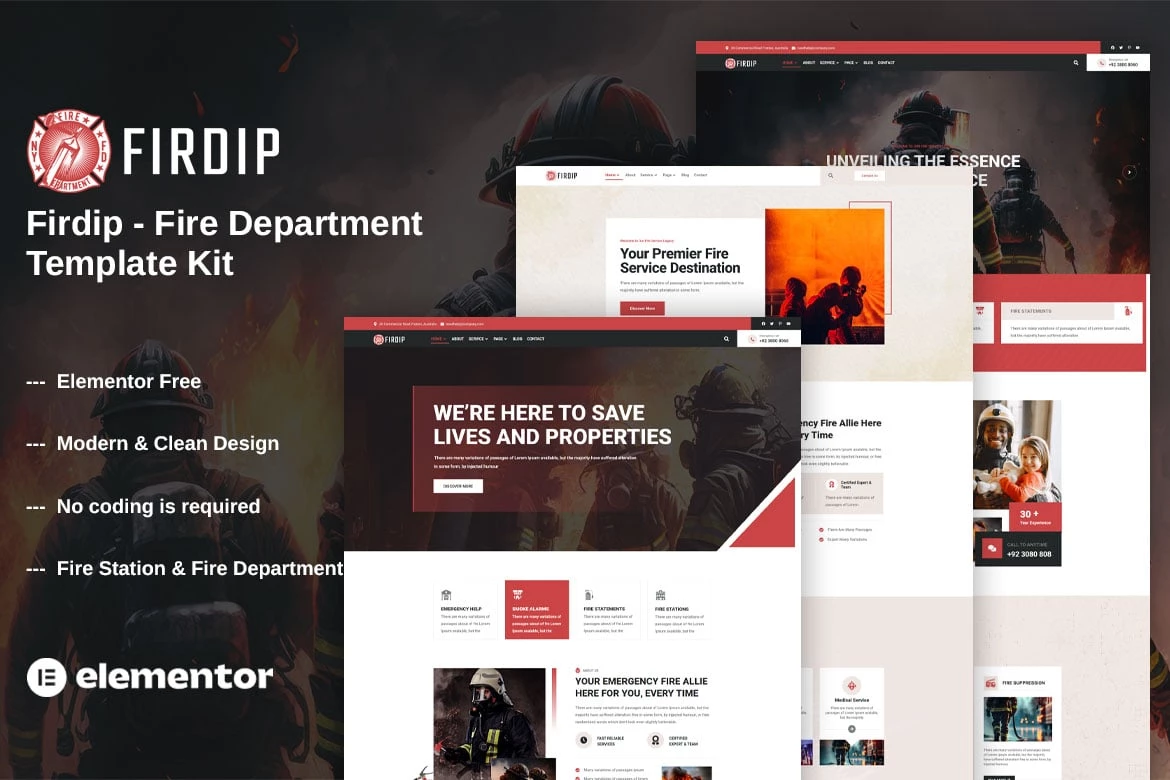 Especificaciones: Firdip – Kit de plantillas Elementor para el Departamento de Bomberos