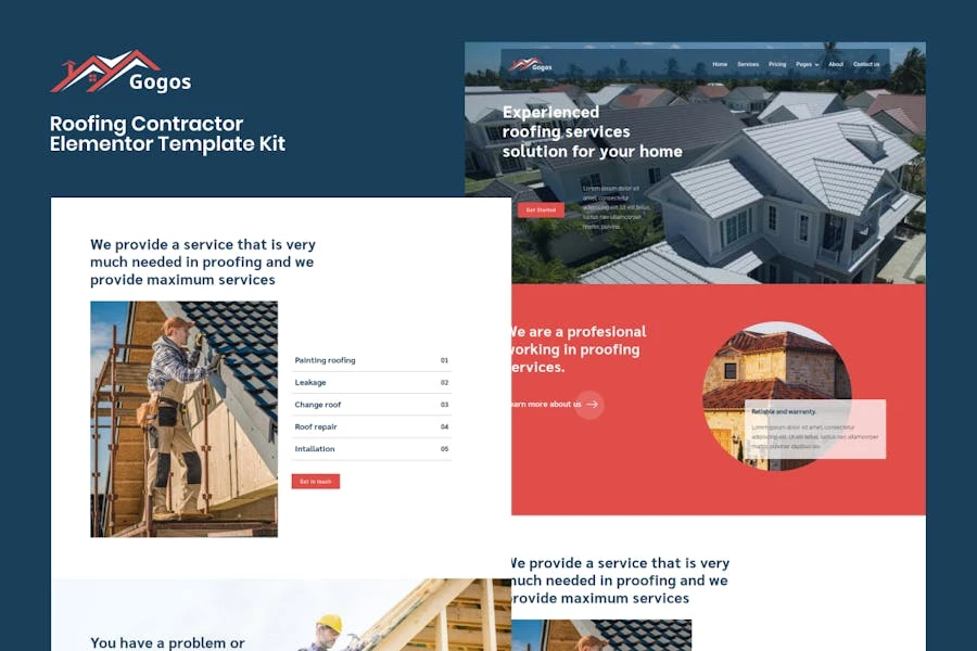 Gogos – Kit de plantillas Elementor para contratistas de techos