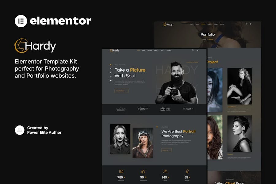 Hardy is a modern and clean Elementor Template Kit that is perfect for thosewho want to create a professional-looking WordPress-based website for aPortrait Photographer, Photography Portfolio, Photography Gallery and anyother related business. This template has a professional design with a 100%responsive layout, is retina-ready, and is very easy to customize becauseusing Elementor so you don’t need a single line of coding!
