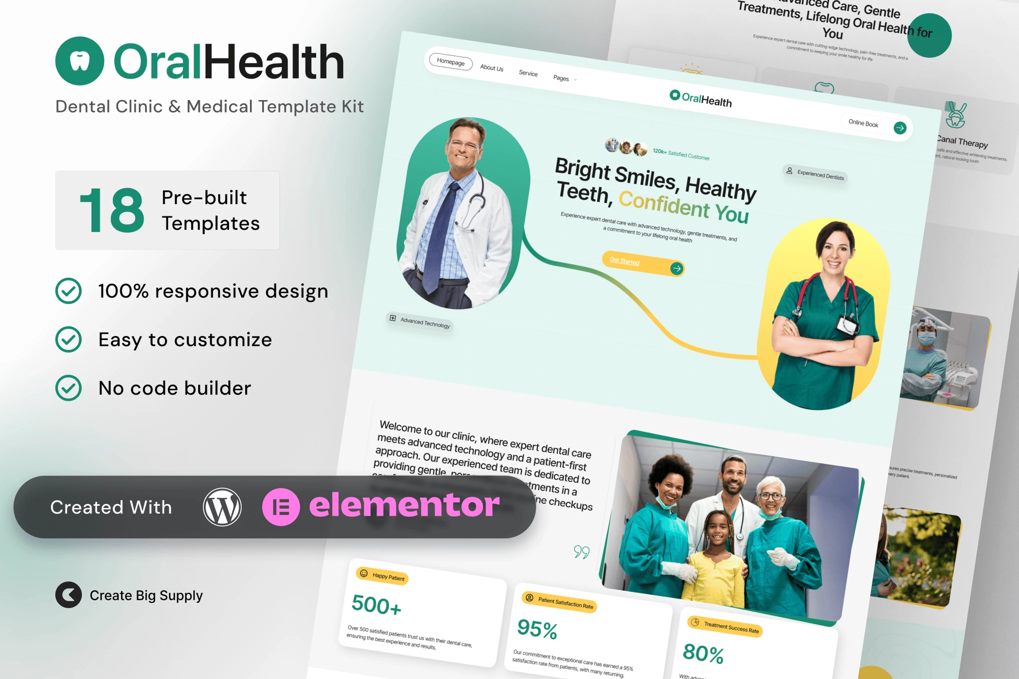 Especificaciones: OralHealth – Kit de plantillas Elementor para clínicas dentales y medicina