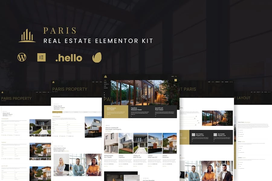 Especificaciones: París – Kit de plantillas Elementor para bienes raíces