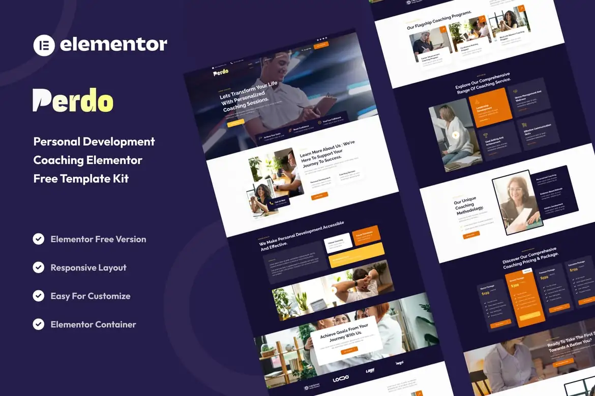 Secciones versátiles: Desde llamativos banners de héroes hasta atractivos diseños de Porfolio, el Perdo – Personal Development Coaching Elementor Template Kit incluye una variedad de secciones para mostrar tu contenido de manera efectiva. Impresione a su audiencia con imágenes atractivas y una interfaz fácil de usar