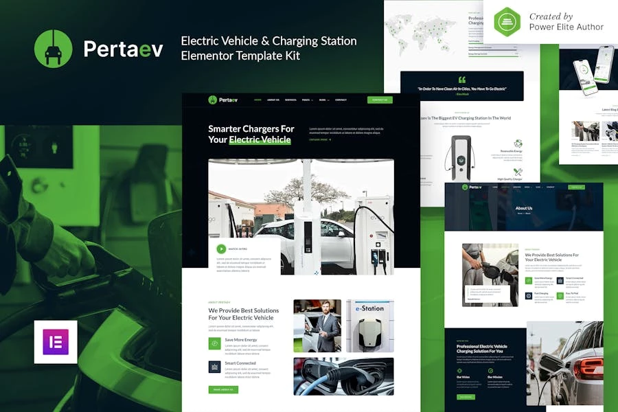 Pertaev — Kit de plantillas Elementor para vehículos eléctricos y estaciones de carga