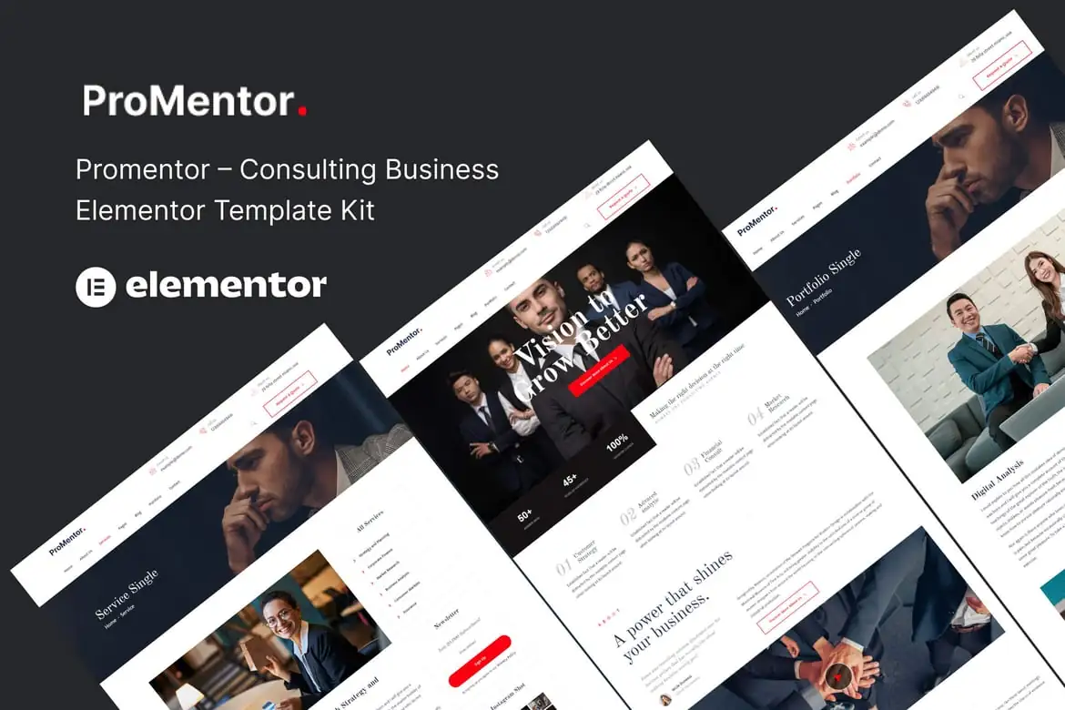 Promentor es el Kit de Plantillas de Elementor para el sitio web de servicios de consultoría. Creado con Elementor Page Builder, puedes editarlo o personalizarlo fácilmente, sin necesidad de codificación, solo tienes que arrastrar y soltar