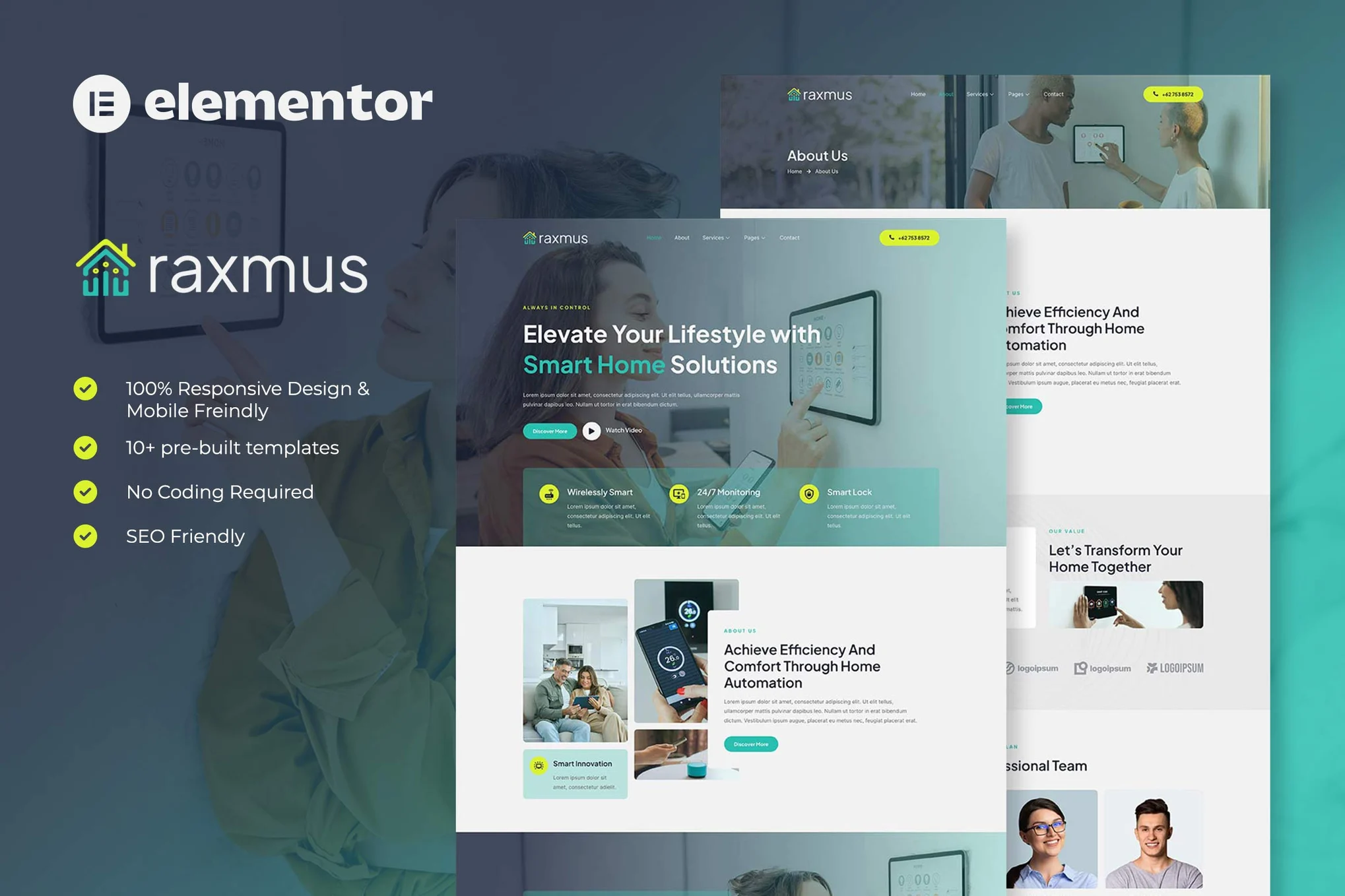 Raxmus – Kit de plantillas Elementor para automatización del hogar inteligente