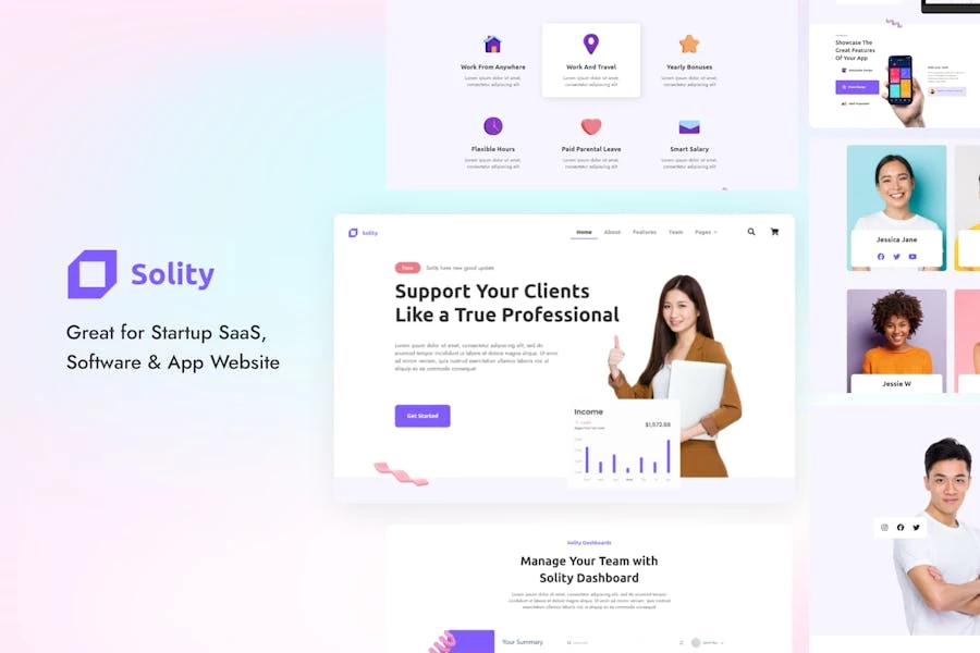 Solity is a modern Elementor Template Kit that perfect to create a WordPress-based website for Software Companies, Software as a Service (SaaS), Tech Startups, Digital Agencies, and Web App landing page. This template has a professional design with a 100% responsive layout, is retina-ready, and is very easy to customize because using Elementor so you don’t need a single line of coding!