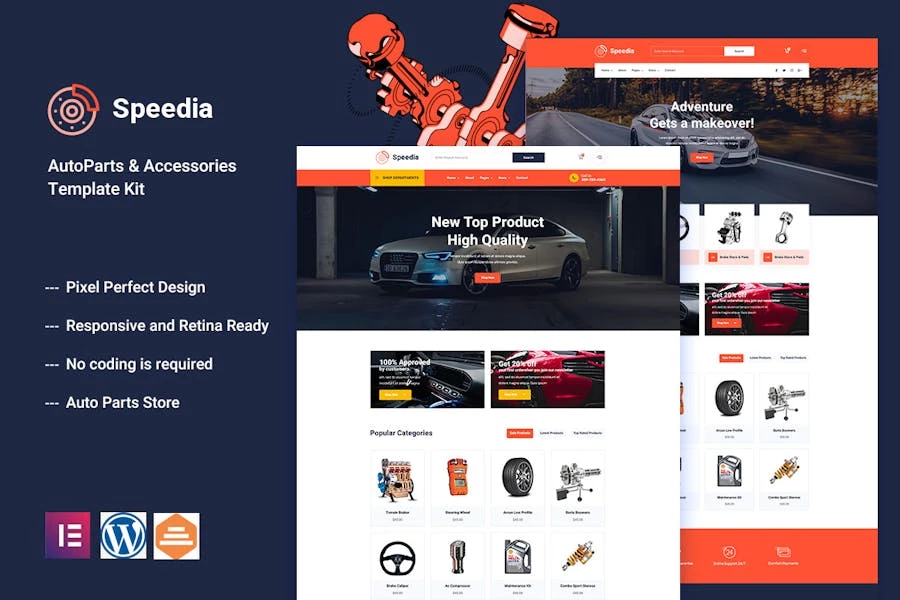 Especificaciones: Speedia – Template Kit Elementor para autopartes y accesorios
